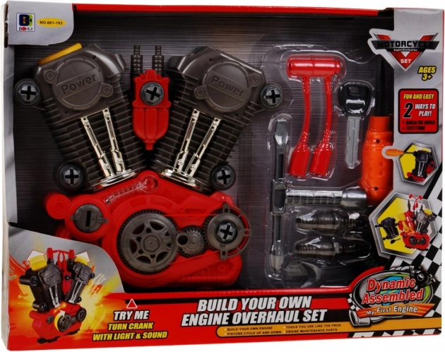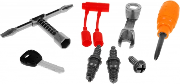 Le set comprend divers outils en plastique qui permettent aux enfants d'expérimenter vraiment les réparations et modifications du moteur.