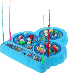 Un jeu de pêche pour enfants amusant avec trois étangs rotatifs qui offre des heures de plaisir pour 2 à 4 joueurs. L’ensemble coloré avec 21 poissons et 4 cannes développe la motricité fine, l’observation et la coordination œil-main. Il suffit d’insérer des piles, de lancer la rotation et d’attraper les poissons qui « émergent » régulièrement de l’eau.