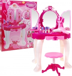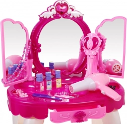 Le set comprend une coiffeuse stable, un tabouret confortable et un riche ensemble d’accessoires pour se maquiller et se parer. Le sèche‑cheveux à piles émet un son et une brise douce, ajoutant du réalisme au jeu. L’ensemble favorise la créativité, la motricité fine et les jeux de rôle.