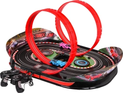 Le circuit est facile à assembler et à transporter grâce à sa poignée pratique. Le set comprend deux voitures de course détaillées avec pneus en caoutchouc et une paire de commandes ergonomiques à manivelle. Le set peut être converti en version R/C après achat d’accessoires (télécommandes et alimentation non incluses).