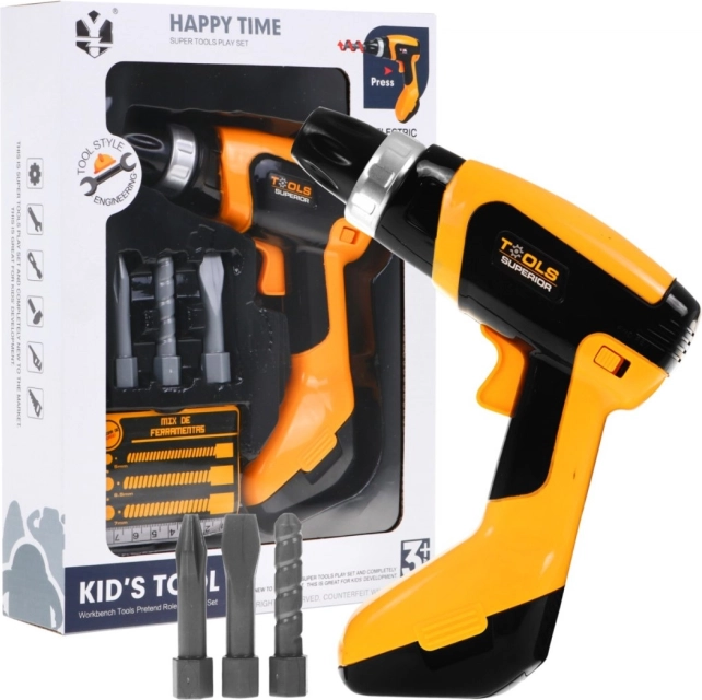 Cette perceuse électrique pour enfants ressemble et fonctionne comme une véritable perceuse. Les enfants peuvent l’utiliser pour serrer et desserrer des vis ou pour percer. Les embouts interchangeables rendent le jeu encore plus amusant.
