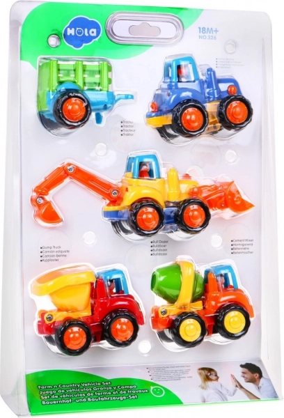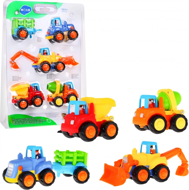 L’ensemble contient 4 véhicules de chantier à propulsion :- bétonnière