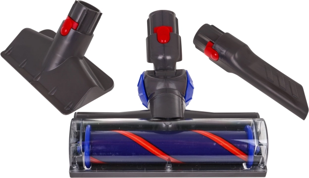 | - station d’accueil de l’aspirateur, - aspirateur vertical, - électrobrosse, - suceur plat, - brosse pour tissus d’ameublement, - billes de polystyrène – imitation de déchets. |