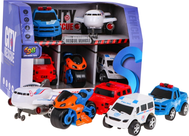 Profitez d’un ensemble de jouets amusant comprenant cinq véhicules différents : trois voitures de police, un avion et une moto. Chaque modèle est conçu pour apporter de la joie aux enfants et stimuler leur imagination.