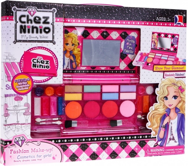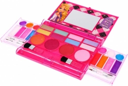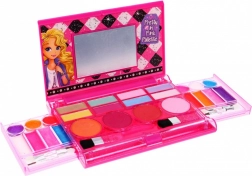 Adorable palette de maquillage rose pour enfants à partir de 5 ans, proposant des fards colorés et rouges à lèvres, des pinceaux et un miroir dans une palette dépliante. Le tout est rangé dans un étui compact, idéal pour les voyages. Fabriquée avec des matériaux sûrs et conçue pour stimuler la créativité et la motricité fine.