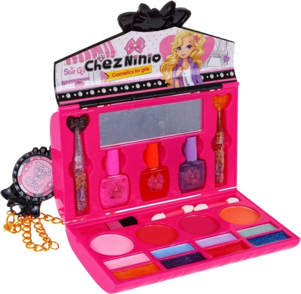 Adorable coffret de maquillage pour enfants en forme de sac rose qui ravira les petites coquettes dès 5 ans. Offre 2 en 1 – sac et mini coiffeuse avec vernis à ongles, fards à paupières, blushs et gloss, un miroir et une chaînette bandoulière. Fabriqué avec des matériaux sûrs et idéal pour les voyages et le jeu créatif.