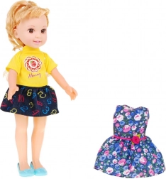 La poupée a une tenue de base et en plus une robe fleurie – les enfants peuvent combiner les pièces selon leur humeur et leurs histoires.