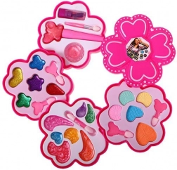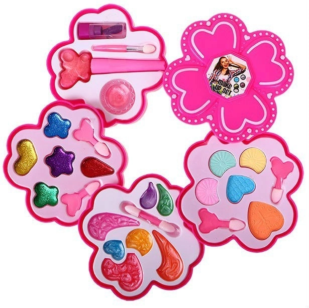 Un coffret rose pliable avec maquillage pour enfants dès 3 ans apporte un divertissement sûr et créatif. Il contient des fards à paupières aux textures variées, un rouge à lèvres, un gloss, un vernis à ongles et des applicateurs pratiques. Son design compact en forme de fleur est parfait pour voyager et comme cadeau.