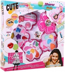 Le set comprend des fards à paupières poudrés, pailletés et gel, un rouge à lèvres, un gloss, un vernis à ongles et des applicateurs pratiques. Grâce à ses dimensions compactes, le coffret est facile à transporter, idéal pour les visites ou les vacances et parfait comme emballage cadeau.
