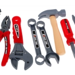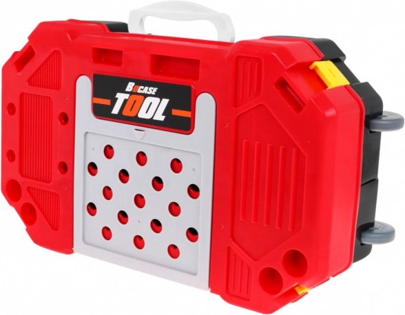 Équipement riche inclus : perceuse/visseuse, marteau, étau, scie, pince, clés Allen et plates, tournevis, vis, écrous, engrenages, mètre ainsi que des éléments de travail filetés pour un vissage et un montage sans fin. Grâce à une organisation astucieuse des outils, les enfants exercent l’ordre, la patience et la coordination œil-main.