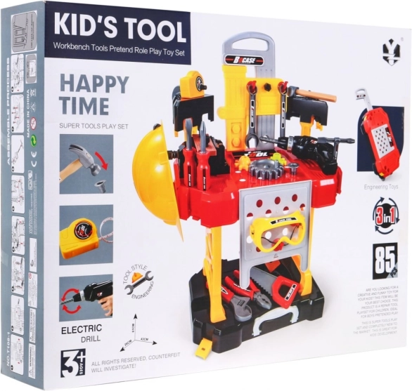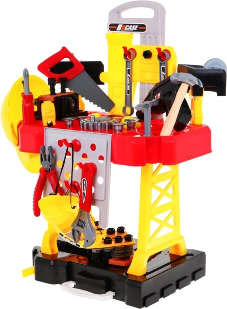 Un plan de travail stable avec supports et filetages pour vis permet aux enfants de monter, scier et marteler comme dans un véritable atelier. Un excellent choix pour développer compétences et imagination.