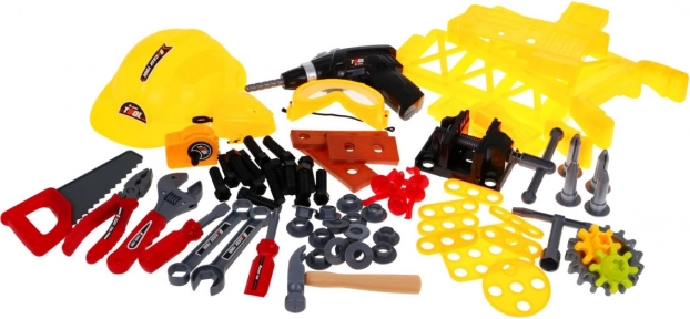 Du marteau à la scie en passant par les engrenages – 85 pièces dont des vis, écrous et plaquettes de travail pour des heures de vissage et de construction.