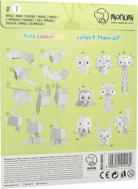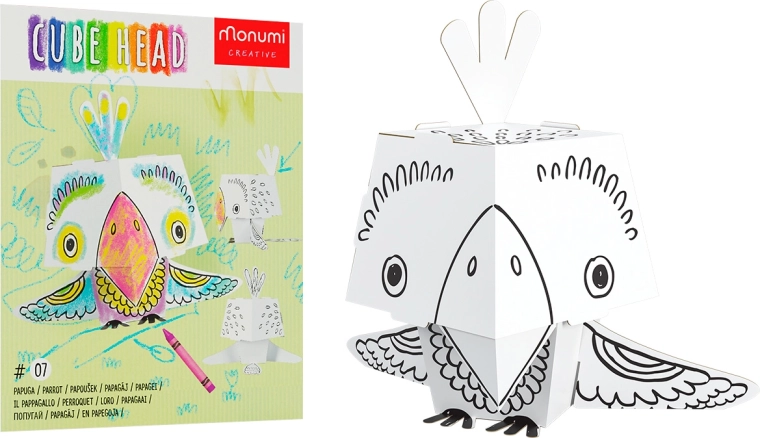 Découvrez un puzzle 3D à colorier en forme de perroquet fabriqué en carton blanc de qualité. Les pièces sont découpées avec précision, se montent facilement sans colle ni ciseaux, et le modèle final est stable, résistant et léger. Convient pour crayons de couleur, feutres, marqueurs et peintures.
