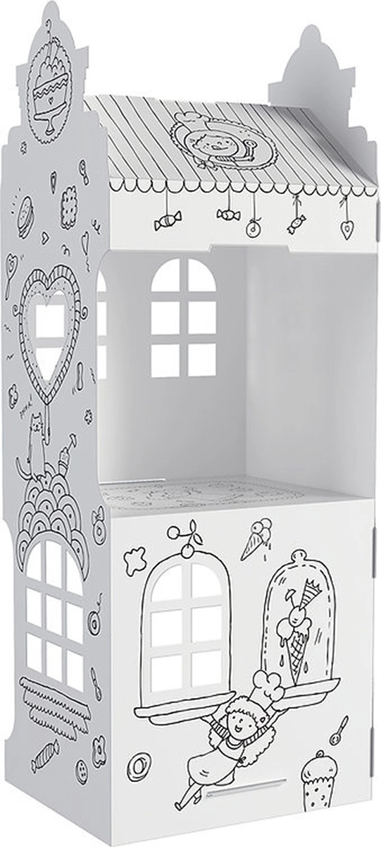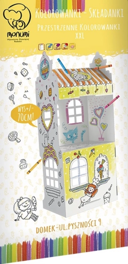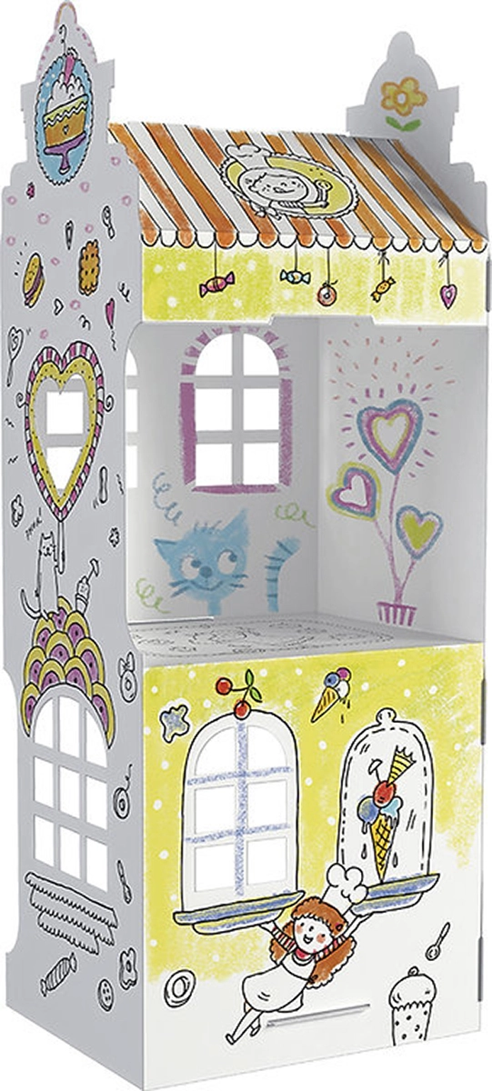 Découvrez un divertissement créatif avec une maisonnette en carton à colorier qui, une fois assemblée, transforme la chambre des enfants en une petite ville. Les enfants peuvent utiliser crayons de couleur, feutres et peintures, puis jouer pendant des heures avec la maison une fois montée.