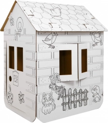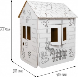 Découvrez la spacieuse maison en carton XXL que les enfants peuvent assembler eux-mêmes et décorer selon leurs envies. Les surfaces blanches aux contours noirs de chevaux et de nature invitent à colorier avec crayons, feutres ou pastels (accessoires non inclus).