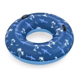 La bouée gonflable BESTWAY au motif tropical de requins et de palmiers est idéale pour la piscine ou les eaux calmes d’un lac. Son grand diamètre de 119 cm apporte un soutien confortable, tandis que deux poignées intégrées facilitent l’embarquement et la tenue, même lors des éclaboussures.