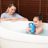 Grâce à sa structure gonflable, le dinosaure flotte en toute sécurité à la surface et transforme le bain en moment de jeu.