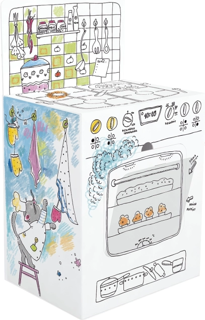 La cuisine assemblée est stable, résistante et légère. Les graphismes professionnels et l’impression noire nette sont idéaux pour colorier avec des crayons, feutres, marqueurs et peintures. Le carton absorbe bien l’humidité, ne gondole pas et ne traverse pas.