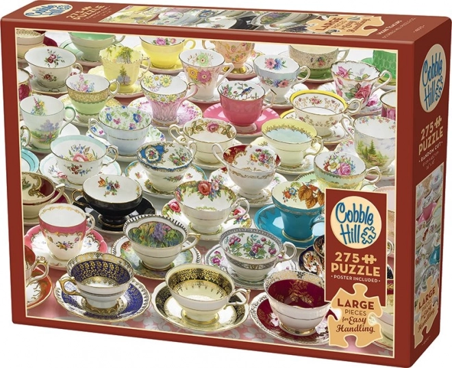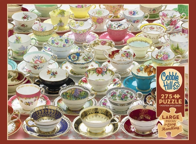 Profitez de l’assemblage avec des pièces extra grandes de la collection Easy Handling de la marque COBBLE HILL. Ce puzzle au motif « Plus de tasses » propose 275 pièces d’une taille moyenne d’environ 3 cm, qui facilitent la manipulation, ménagent la vue et sont idéales pour les séniors, les personnes ayant une baisse de vision ainsi que les enfants. Les formes inhabituelles des pièces et la découpe non standard offrent un défi ludique et un emboîtement précis. L’emballage comprend également un poster de 31,6 × 22,9 cm.