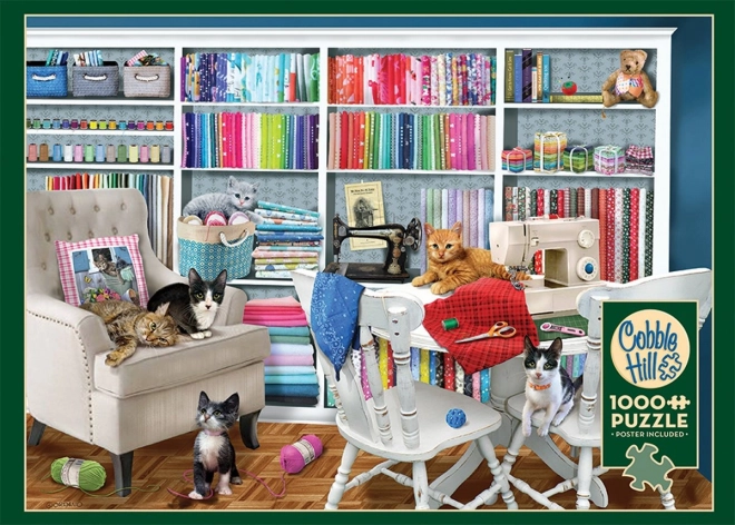 Découvrez la beauté d’un puzzle sur le thème d’un atelier de couture : le puzzle COBBLE HILL avec 1000 pièces propose une découpe non conventionnelle aux pièces de formes inhabituelles, offrant une difficulté accrue et un défi ludique. Une affiche modèle est également incluse pour un assemblage plus confortable.