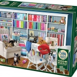 Profitez d’une expérience de puzzle premium avec COBBLE HILL – Atelier de couture. Grâce à une découpe spéciale qui ne suit pas une grille classique, les pièces ont des formes uniques, rendant l’assemblage plus attractif et immersif. Le motif d’un coin couture chaleureux ravira les amateurs de travaux manuels et les collectionneurs de puzzles de qualité.