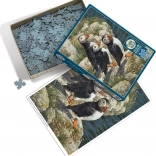 Plongez dans un monde de calme et de sérénité avec ce puzzle représentant de charmants macareux sur une côte rocheuse. Grâce à la matrice originale COBBLE HILL, les angles et les bords des pièces ne sont pas alignés, conférant à chaque pièce une forme unique et renforçant le plaisir comme la logique de l’assemblage. Une fois terminé, vous obtiendrez une image impressionnante d’environ 48,9 × 67,6 cm, idéale à encadrer.