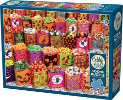Le puzzle COBBLE HILL avec des motifs de bonbons d'Halloween offre une expérience d'assemblage unique et stimulante. Grâce aux formes non conventionnelles des pièces qui ne suivent pas le schéma de grille traditionnel, vous aurez besoin de plus de patience et d'adresse pour l'assemblage.