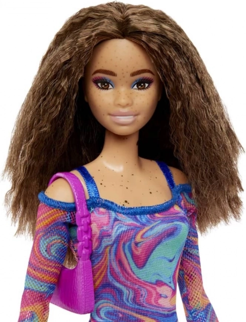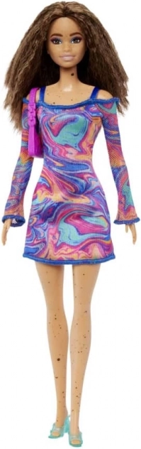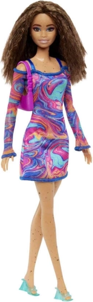 Les poupées Barbie Fashionistas apportent un regard frais sur la mode, le style et la personnalité. Cette poupée séduit par un tourbillon de tons corail, roses et bleus sur une robe au motif marbré arc‑en‑ciel, des manches en résille et des accessoires tendance. Idéale pour les enfants qui aiment associer des tenues et inventer leurs propres histoires.