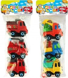 Set de voitures à visser pour enfants, comprenant trois modèles différents d’une longueur de 10 cm. Idéal pour les petits constructeurs et pompiers.