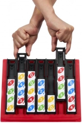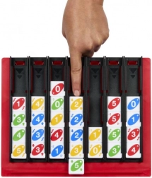 UNO Quatro combine le meilleur du UNO classique et de la stratégie du puissance 4. Les joueurs placent à tour de rôle des tuiles triangulaires ou carrées avec des chiffres et des couleurs dans un cadre à fentes et tentent de créer une ligne continue de quatre de la même couleur ou du même chiffre. La tension est renforcée par des actions spéciales qui permettent de déplacer, échanger ou faire coulisser des rangées entières – un mélange idéal de planification, de bluff et de retournements.