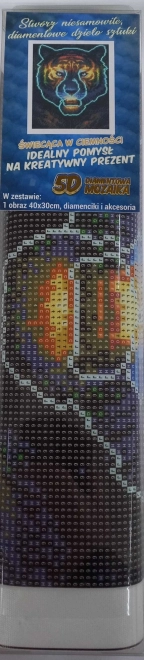 Découvrez un loisir relaxant pour petits et grands : kit de peinture diamant avec motif tigre au format 30 × 40 cm. Une partie des strass brille dans le noir après exposition à la lumière, offrant un rendu magique. Le coffret contient tout le nécessaire – toile préimprimée, applicateur, cire, coupelle et strass colorés. La création est simple, ludique et ne nécessite aucune compétence artistique.