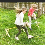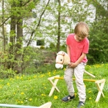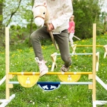 Nous vous présentons le parcours d’obstacles Kavaleta de la marque Small Foot, fabriqué en bois massif, qui permet de créer votre propre petite piste de saut. Les deux obstacles, qui rappellent de véritables cavaletti, peuvent être utilisés de manière flexible : avec la barre en position basse pour de petits sauts, ou empilés l’un sur l’autre. Jouer au « cheval » et sauter par-dessus les obstacles avec un hobby horse est un divertissement apprécié des passionnés de chevaux de tous âges.