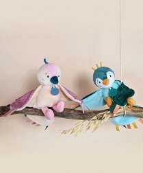 Cette peluche toute mignonne n’est pas seulement un compagnon câlin pour votre bébé, elle favorise aussi le développement des sens et de la motricité fine. Ses ailes, sa queue et sa tête sont ornées de rubans colorés que les enfants peuvent manipuler pour développer leur sens du toucher.