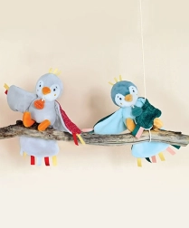 Les rubans colorés placés sur les ailes et la queue de l’oiseau sont conçus pour développer la motricité fine et encourager l’interaction avec le jouet.