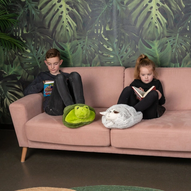 Ce grand chausson d’intérieur en forme de tortue est conçu pour un confort maximal en position assise ou allongée. Grâce à son rembourrage super doux et son intérieur douillet, il garde les pieds au chaud sans électricité et sans risque de brûlures. Idéal pour regarder la télévision, lire, jouer ou travailler sur un ordinateur portable.