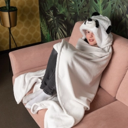 La couverture à capuche COZY NOXXIEZ Panda est conçue pour un maximum de confort et de plaisir. La polaire super douce tient agréablement chaud, la capuche avec petites oreilles de panda et imprimé apporte une touche adorable, et les poches d’angle en forme de pattes gardent les mains bien au chaud. Idéale pour se détendre sur le canapé, lire ou écouter une histoire du soir.
