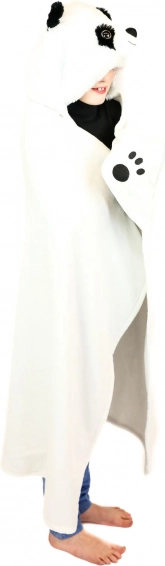 Une couverture en polaire avec capuche, toute douce au look panda qui ravira chaque enfant. Elle offre une capuche au motif animal, des poches d’angle en forme de pattes et une chaleur agréable à la maison comme dehors. Grâce à la capuche et aux poches, elle est idéale non seulement pour se blottir, mais aussi pour jouer et stimuler l’imagination. Entretien facile, dimensions 130 × 100 cm, matière 100% polyester.