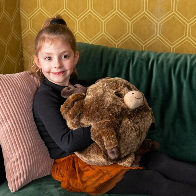 Ce coussin peluche multifonction est parfait pour les enfants de tous âges. Il est fabriqué en matériau ultra doux et grâce aux ouvertures latérales, il sert non seulement de lieu de repos confortable, mais aussi de manchon pour réchauffer les mains. Le coussin est idéal pour voyager grâce à ses dimensions compactes, il se transporte facilement et garde les mains au chaud. De plus, les ouvertures latérales peuvent servir de cachette secrète pour de petits trésors.