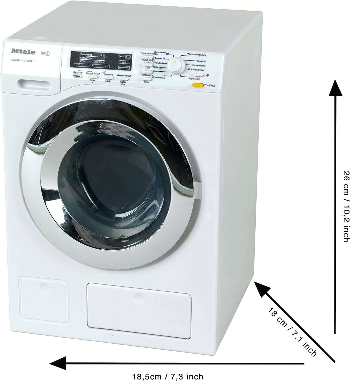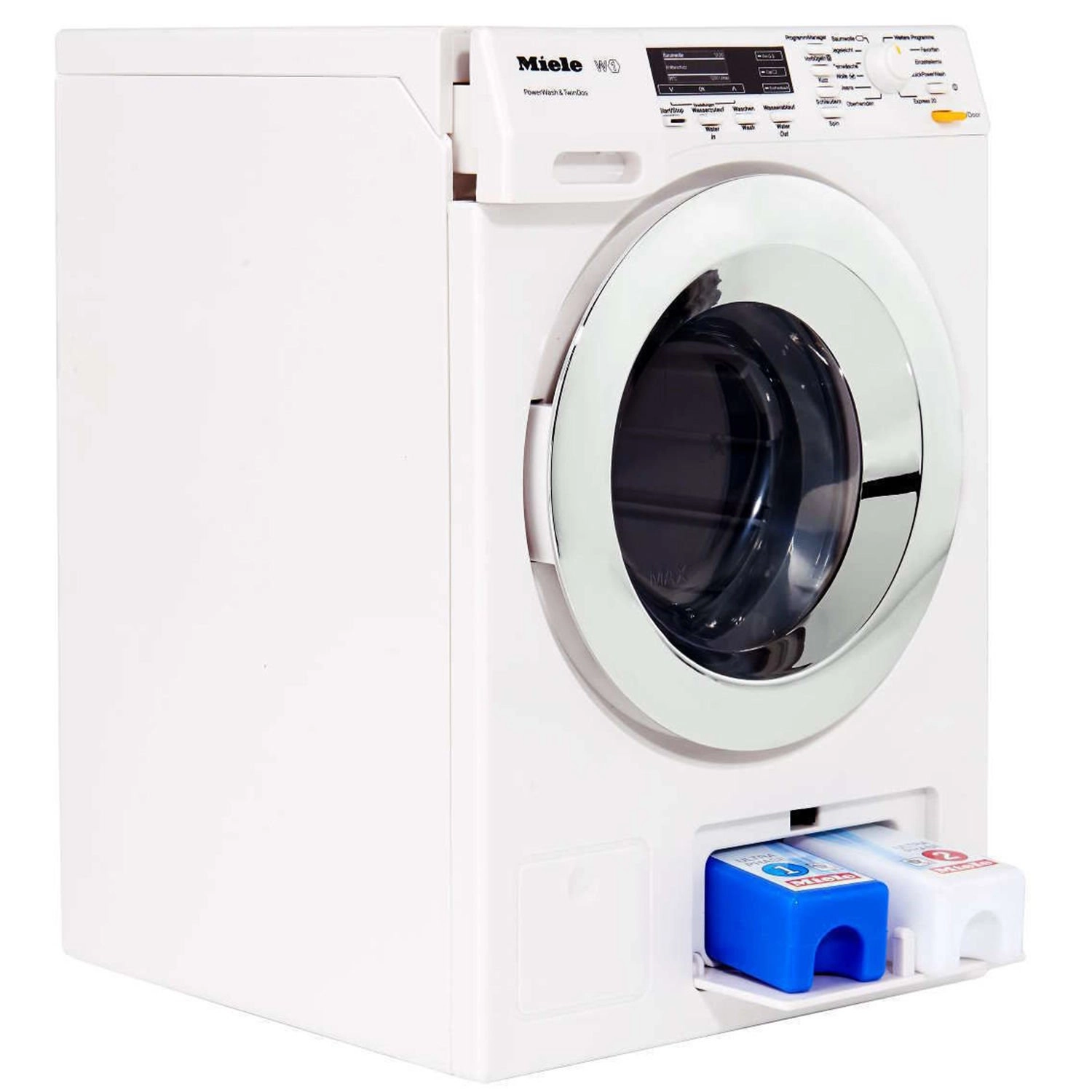 Cette machine à laver pour enfants sous licence MIELE reproduit fidèlement un véritable appareil et motive les enfants à développer leur imagination et leur motricité fine. Grâce à quatre programmes réalistes – remplissage, lavage, vidange et essorage – les petits aides s’amusent énormément. Le témoin LED et les sons réalistes de chaque phase rendent chaque jeu plus immersif.