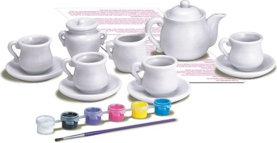 Découvrez le mini service à thé créatif que les enfants peuvent décorer et peindre eux-mêmes selon leur imagination. Le coffret contient tout le nécessaire pour personnaliser un service à thé 13 pièces – idéal pour jouer avec des poupées, organiser des goûters thé ou comme décoration originale de chambre.