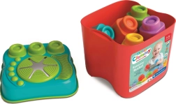La boîte en plastique pratique avec couvercle texturé sert de base stable pour construire et de trieur pour insérer les briques. Les briques Soft Clemmy, souples et flexibles, sont fabriquées en matériau non toxique, agréable au toucher et délicatement parfumé à la vanille. Parfaites pour la découverte des formes et des couleurs, elles se nettoient facilement et peuvent même être utilisées dans l’eau.