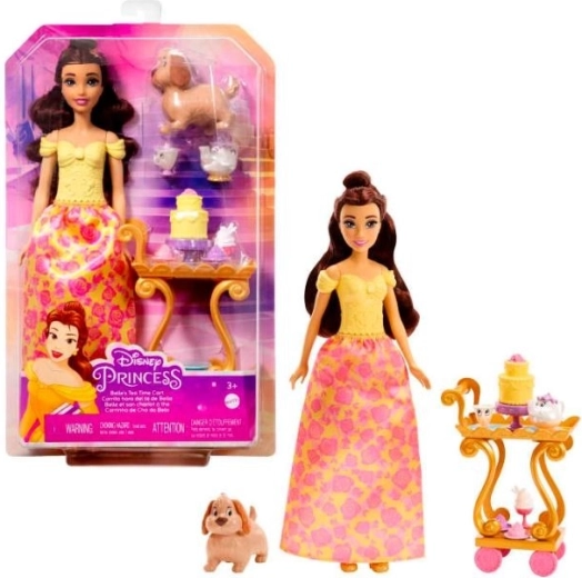 La princesse Disney Belle et ses amis t’invitent à un goûter au palais ! La poupée Belle est superbe dans sa tenue de sa couleur préférée, le jaune, et l’ensemble comprend aussi un chariot pour le thé de l’après-midi, des figurines d’amis et de la nourriture. Les fans peuvent rejouer leurs moments de film préférés ou inventer leurs propres histoires inoubliables. La poupée ne tient pas debout toute seule. Les couleurs et éléments décoratifs peuvent varier.