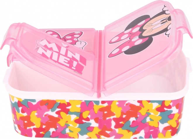 Le couvercle supérieur arbore la licence officielle DISNEY – MINNIE avec des couleurs gaies que les enfants adorent. La boîte est en outre sans BPA et donc sûre pour le contact avec les aliments. Elle peut aussi servir à ranger de petits jouets et trésors d’enfants.
