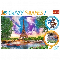 La série Crazy Shapes est connue pour ses styles originaux, où les puzzles se distinguent par des formes non standard sans lignes droites et un bord irrégulier. Une fois assemblé, vous obtiendrez une image avec une vue romantique sur le ciel parisien. Des matériaux de haute qualité ont été utilisés pour la fabrication de ces puzzles, notamment un papier calandré spécial qui réfléchit la lumière et facilite l’assemblage.