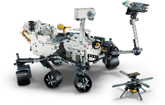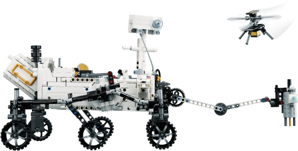 Le set comprend aussi un modèle de l’hélicoptère NASA Ingenuity, qui a accompagné le rover lors des essais de vol sur Mars. Grâce aux instructions intuitives de l’application LEGO Builder, vous pouvez faire pivoter et zoomer le modèle en 3D, suivre la progression de la construction et sauvegarder vos projets en cours.