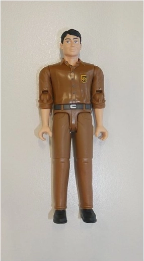Figurine articulée de conducteur UPS, idéale comme accessoire pour les modèles Bruder. Homme en uniforme typique de couleur brune. Fabriquée en Allemagne avec des matériaux de qualité. Principales caractéristiques : figurine articulée, fabriquée en Allemagne