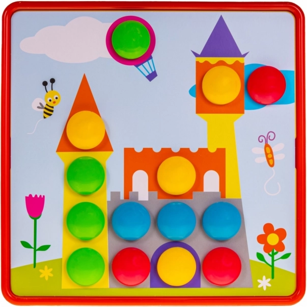 Cette mosaïque colorée pour enfants repose sur un principe simple que les petits comprennent immédiatement : choisissez l’un des 12 modèles, suivez les contours colorés et insérez les chevilles dans les bons trous. Grâce aux couleurs vives et aux grandes pièces, l’assemblage est amusant et intuitif, même pour les tout‑petits.
