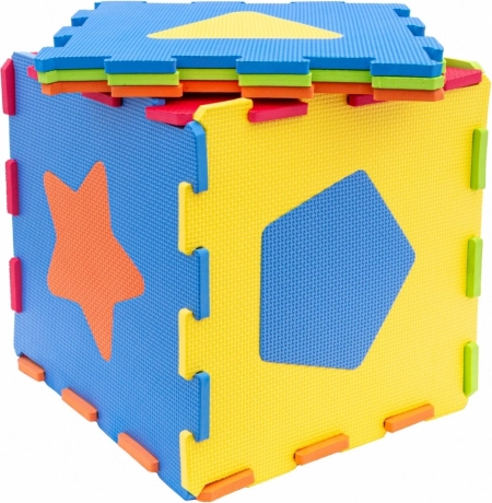 Il est fabriqué en mousse souple, agréable au toucher. Il peut également servir de base pour d’autres jeux ou pour se reposer. Le jouet développe: la perception, la reconnaissance des couleurs et des formes, la construction de figures spatiales, le jeu imaginatif.