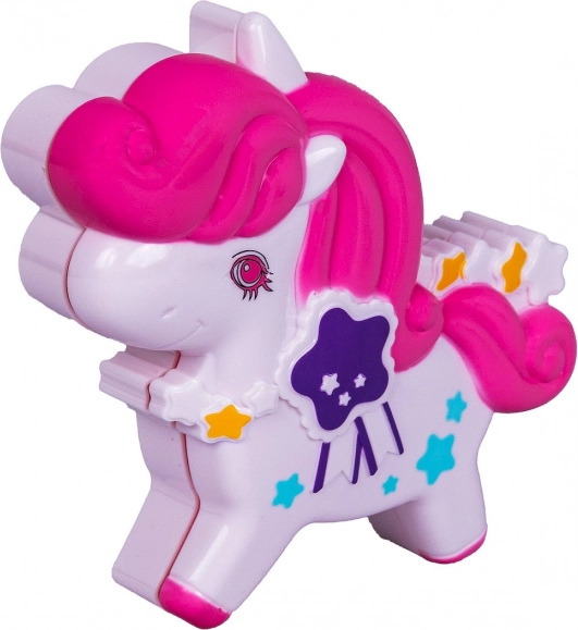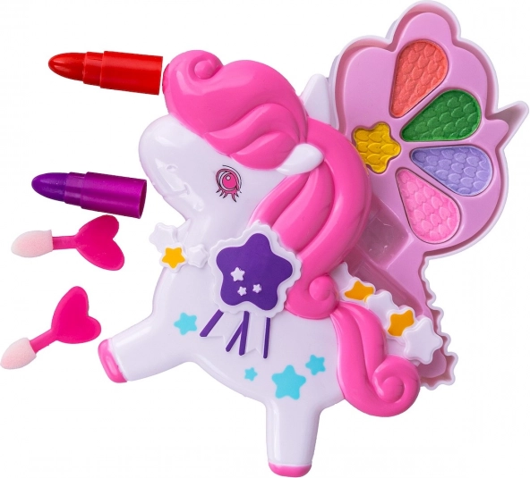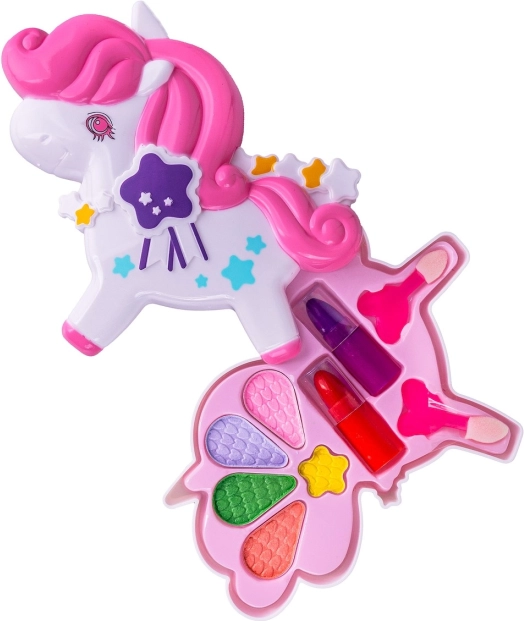 Le design de la licorne blanche à crinière rose stimule l’imagination et fait du maquillage une activité ludique.