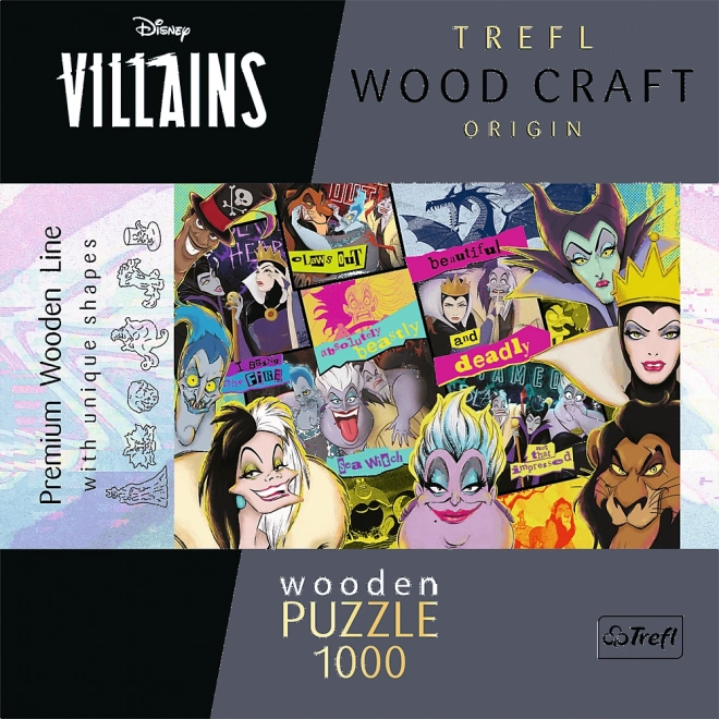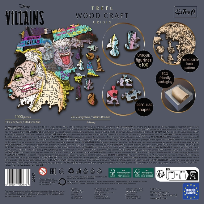 Découvrez le puzzle en bois premium et recto-verso TREFL de la série Wood Craft Origin avec le motif Disney : Rencontre des méchants. Grâce à une découpe laser de haute précision, les pièces s’emboîtent parfaitement, les bords sont lisses et l’assemblage offre une expérience incomparable aux amateurs de puzzles et de l’univers Disney. Profitez de 100 pièces aux formes uniques, d’une impression recto-verso et d’un emballage écologique sans plastique.